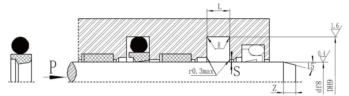 Eskaera-eredua: RC11-B-40x55.1x6.3-PTFE3-RO2 Eredua: Hagaxka Diametroa x Groove Diametroa x Groove Zabalera PTFE3 (Aldatua PTFE) Materialaren kodea: R01, R02 - O-Ring Materialaren kodea