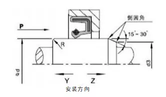 2. Ardatz birakaria eta zirrikituen diseinua: ardatzaren gainazala leuna eta errebarik gabekoa izan behar da. Mekanizazio espiraleko markek ponpaketa efektua sor dezakete, ihesak eraginez. Gomendagarria da olio-zigiluen muntaketa-eremua Ra0,1-0,5µm-ko gainazaleko zimurra arte leuntzea, abiadura handitu ahala leunagoa bihurtuz. Instalatzeko eta desmuntatzeko erraztasuna lortzeko, ardatza eta zirrikituak txanflarekin edo ertz biribilduekin diseinatu behar dira. Ikusi 1. eta 2. irudiak.