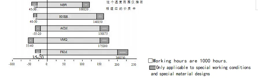 Zigilatzeko efektuari eragiten dioten hamaika faktore daude. Olio-zigiluaz gain, hala nola, bere materiala eta egitura, ertainak, tenperatura, presioa, lubrifikazioa, abiadura eta gainazaleko zimurtasuna bezalako beste faktore batzuek ere zuzenean eragiten dute zigilatzeko efektuan, eta faktore hauek elkarren artean elkarreragiten dute askotan. Hurrengo taulak erabiltzailearen erreferentziarako soilik dira.